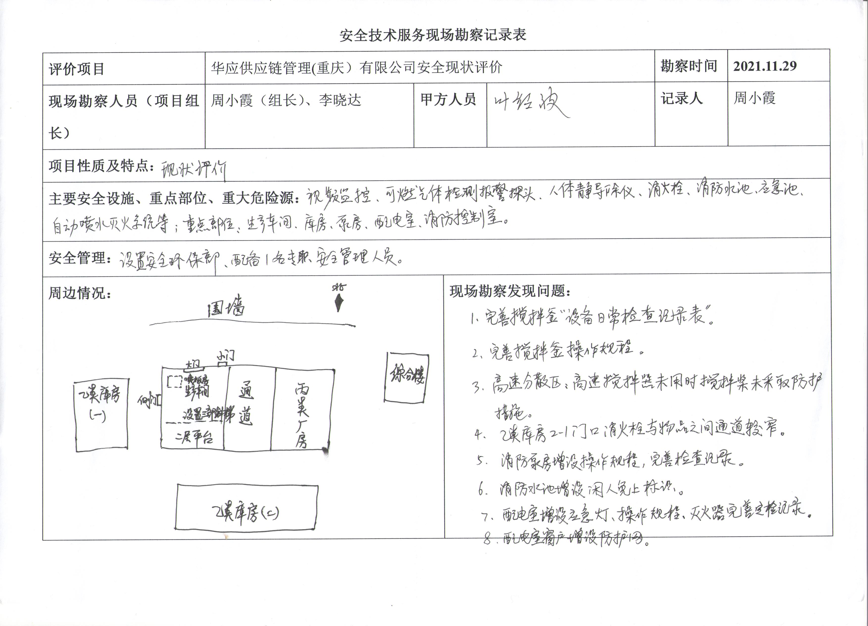 項目名稱 | 華應供應鏈管理(重慶)有限公司安全現(xiàn)狀評價 | 合同編號 | DA-(渝)-PJ-2021012 | |||||