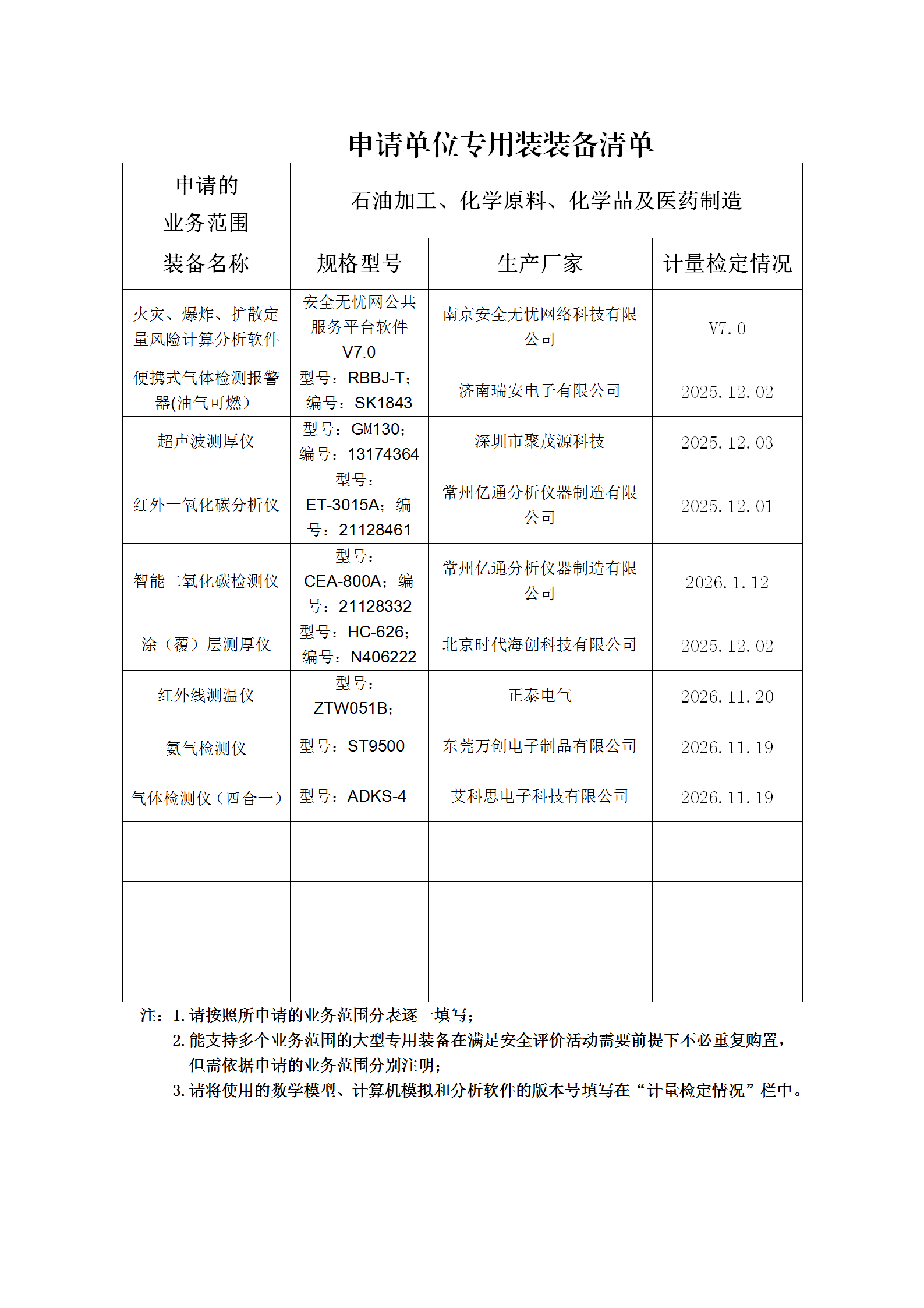 昭通市鼎安科技有限公司專業(yè)設(shè)備、設(shè)施一覽表